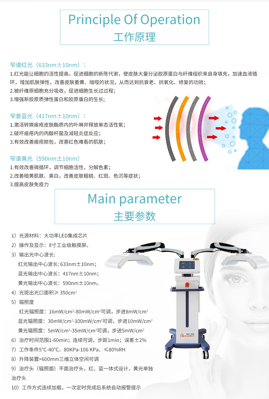 首页 >> 产品 >>产品 >>红蓝光谱仪 >> 红蓝黄光治疗仪